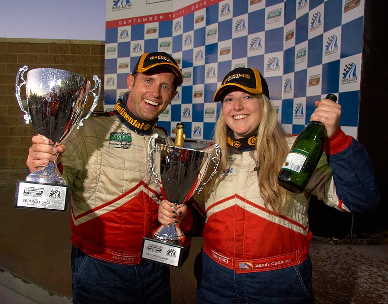 TOOELEÜtah—Sarah Cattaneo and Owen Trinkler gave RSR Motorsports their third consecutive podium in the Street Tuner class during Saturday’s GRAND-AM Continental Tire Sports Car Challenge finale at Miller Motorsports Park. The duo drove the No. 198 RSR Motorsports MINI Cooper S to second place.